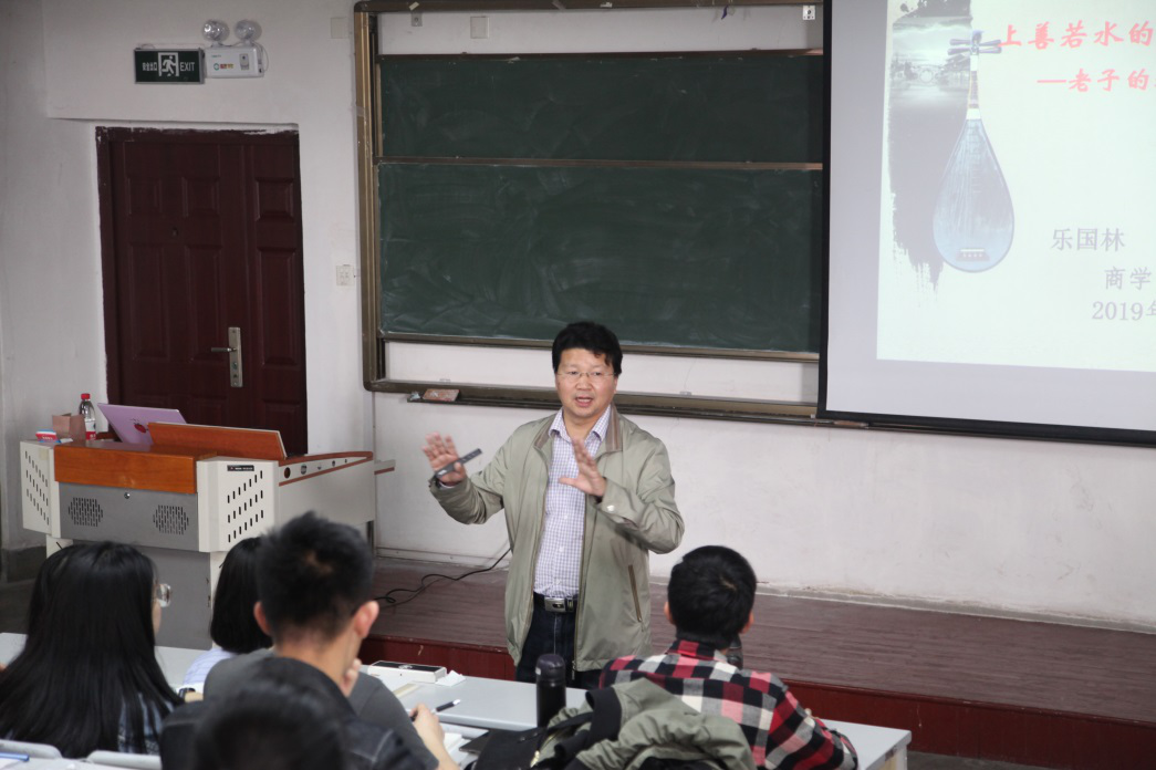 为对学生进行传统文化教育,提高学生综合素质,5月15日下午,9999js金沙老品牌于二教阶204教室举办“潮头”讲堂暨2019年“理工大讲堂”第二讲,9999js金沙老品牌副院长乐国林做《上善若水的人生思考:老子的教诲》专题讲座。讲座由9999js金沙老品牌辅导员薛诚主持,学院全体学生工作干部及150余名学生参加了本次活动。