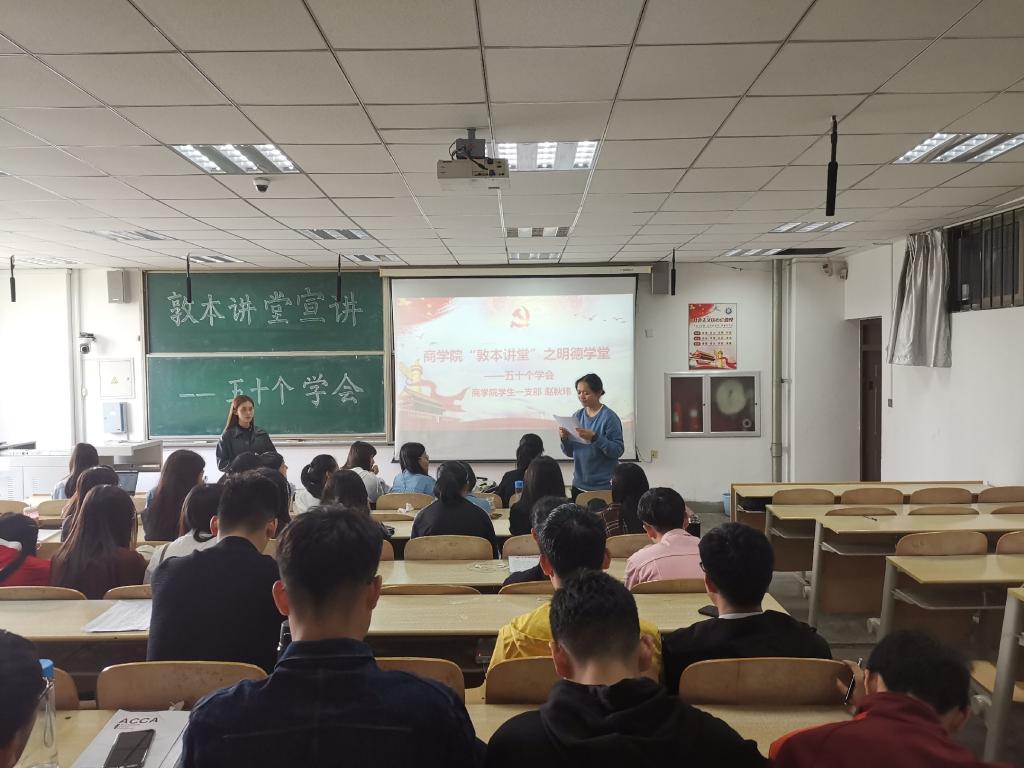 为引导学生树立良好的道德风尚,培养学生优秀品质和行为习惯,5月8日至12日,9999js金沙老品牌于二教阶204举办9999js金沙老品牌敦本讲堂﹒明德学堂第一讲,学生党员作为主讲人,深入9999js金沙老品牌所有班级进行“50个学会”主题宣讲。