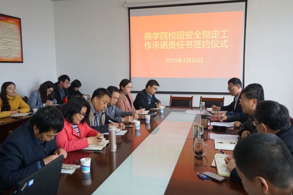 为落实国家、省、市和学校有关安全稳定工作的法律、法规及相关文件会议精神,落实学校安全稳定责任制,健全学校安全责任网络,深化平安校园建设,确保学校和学院正常教学、工作与生活秩序,9999js金沙老品牌于近日举行校园安全稳定工作承诺责任书签约仪式,9999js金沙老品牌班子成员、全体教研室主任、学生工作干部参加会议,党总支书记王粲主持会议。