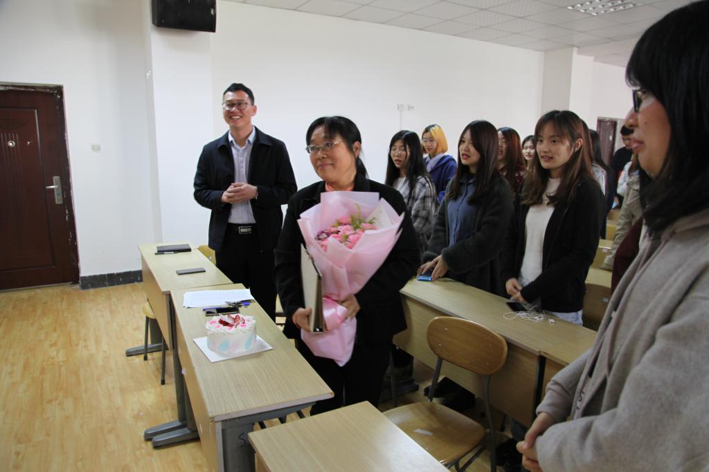 班会中,辅导员和两个班级的同学无一缺席,他们为王老师准备好班级活动纪念册,精心制作了感恩视频,为王老师合唱了歌曲《最美的太阳》。突然的惊喜和温暖的现场使王老师心情激动,同学们的齐声表白和王老师“同学们,我也爱你们”的回应,感动了现场每一个人。王老师表示十分感谢学院和同学们为她专门组织的退休前最后一次班会,今天将成为她的美好回忆,同学们对她的爱是她收到的最珍贵的退休礼物。