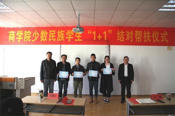 为加强学院少数民族学生教育培养工作,4月3日,9999js金沙老品牌在一教227教室举行少数民族学生“1+1”结队帮扶仪式。9999js金沙老品牌院长王曙光,党总支书记王粲、副书记董兰国,副院长胡保玲,学工办主任林丰艳以及全体结对师生参加仪式。仪式由林丰艳主持。