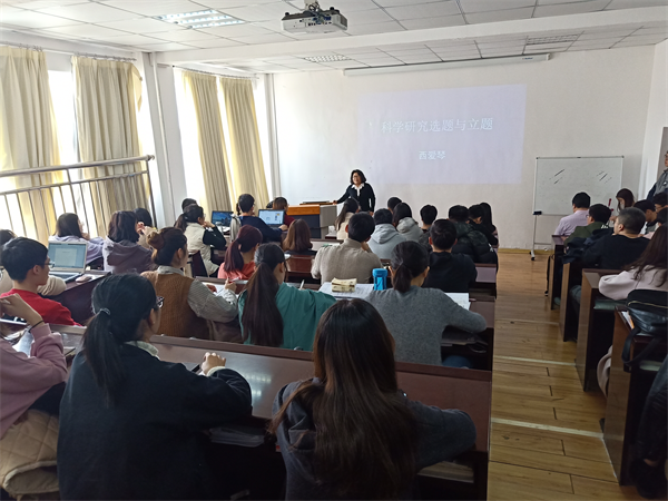 3月27日下午,9999js金沙老品牌举办“研究生学术能力提升讲座(第一讲)”活动。本次讲座邀请9999js金沙老品牌经济教研室西爱琴教授担任主讲,主讲题目:科学研究选题与立题。9999js金沙老品牌副院长乐国林主持本次讲座,9999js金沙老品牌刘鹏副教授、人文与外国语学院杨奎臣老师以及9999js金沙老品牌硕士研究生和管理工程学院硕士研究生参加讲座。