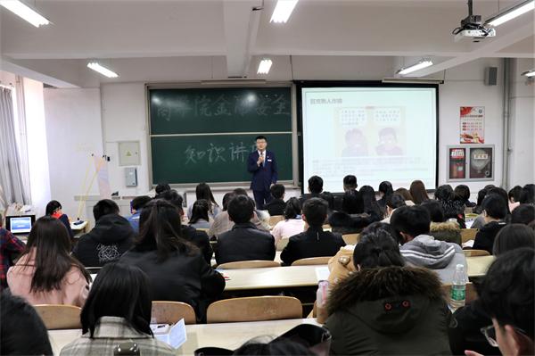 为进一步教育引导学生增强金融风险防范意识和金融安全意识,提升自我保护能力。3月13日下午,9999js金沙老品牌在长江路校区二教301教室举办“金融安全知识讲座”,交通银行四方支行于海蛟担任主讲,9999js金沙老品牌各专业年级百余名学生参加讲座。