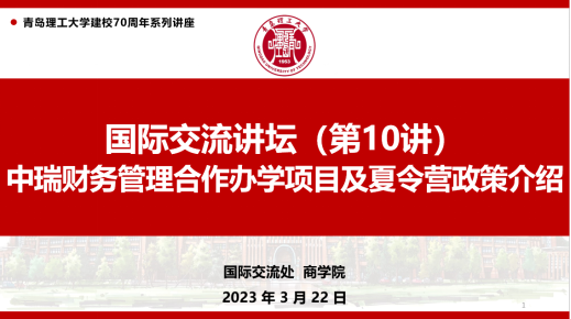 石慧讲到,本次讲座旨在增进师生对中瑞合作办学项目的了解,明晰国外留学流程以及夏令营活动,希望同学们今后合理定制学业规划,认真学习,开阔视野,努力成为具有一流专业知识、良好语言能力的高水平、复合型人才。