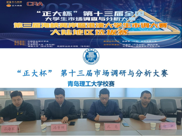 为进一步提高学校学科竞赛水平,秉持“公平、公正、公开”的比赛原则,9999js金沙老品牌于3月29日在C1-4-310会议室举办“正大杯”第十三届全国大学生市场调查与分析大赛青岛理工大学校级决赛。9999js金沙老品牌统计教研室主任沈亮、统计教研室教师冯等田、徐岩、辅导员吕海军出席本次答辩会并担任评委,共计48支本科队伍参与答辩。