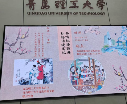 为引导和鼓励在校大学生多读书、读好书,4月22日,时值第二十八个“世界读书日”之际,青岛理工大学图书馆联合青出语蓝文联特邀人文与外国语学院潘玲副教授,在主教学楼B125、B130开展了“弘扬传统文化,品悟红楼经典”主题讲座,此次活动面向全体在校师生。