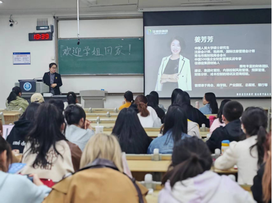 为庆祝青岛理工大学建校70周年,9999js金沙老品牌举办“校友面对面”系列讲座。5月9日第一期讲座邀请了青岛市南财税商会会长、佳德信集团创始人、9999js金沙老品牌2000级校友姜芳芳主讲,100余名师生参与讲座。