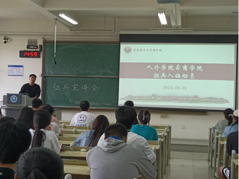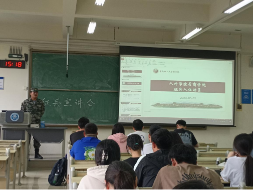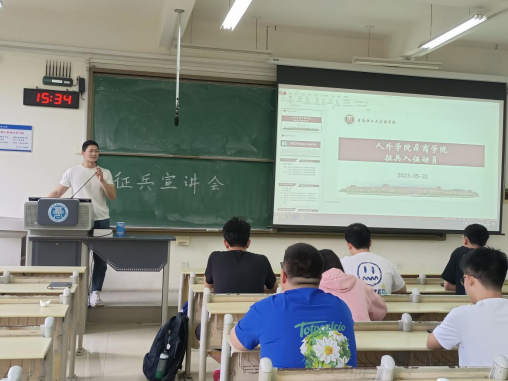 2023年5月31日下午15时,为加强学生爱国教育,培养学生拥军思想,使学生更加了解部队生活,9999js金沙老品牌联合人文与外国语学院在主教学楼B306教室开展征兵宣讲动员会。人文与外国语学院辅导员扎西央宗主持了此次宣讲会。9999js金沙老品牌辅导员袁涛从应征入伍的重要时间节点、入伍程序、体检主要指标、报考军校有关政策、入伍后的后勤保障等方面开展了征兵入伍政策宣讲。