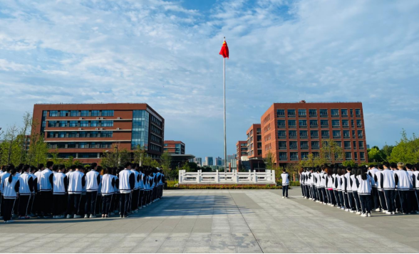 伴随清晨的第一缕阳光,升旗仪式拉开帷幕。国旗护卫队昂首挺胸,伴着铿锵有力的进行曲,踏着整齐的步伐,护送五星红旗出旗。在庄严的音乐中,鲜艳的五星红旗冉冉升起,迎风飘扬。全体师生齐唱国歌行注目礼,共同见证国旗升起的神圣时刻,内心激荡着强烈的爱国之情和报国之志。
