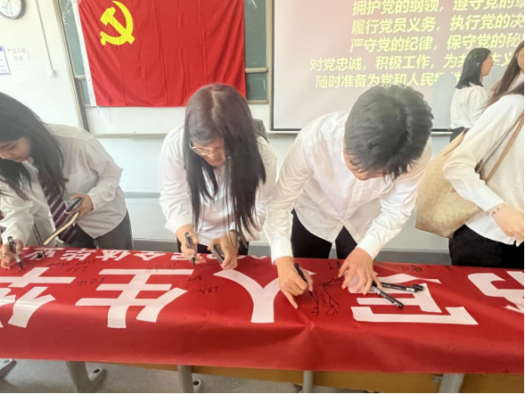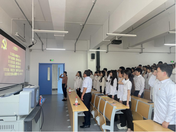 坚定信念忆初心。李慧带领全体毕业生党员面向鲜艳的党旗重温入党誓词,以此来激励每一位毕业生党员牢记党员身份,牢记党的宗旨,立足岗位奉献,以党章规范自己的言行,做一名无愧于党员称号、无愧于入党誓词的优秀党员。李慧表示,希望全体毕业生党员能时刻牢记自己是一名共产党员,始终以党员的标准严格要求自己,站好最后一班岗,在激扬青春中开拓人生,在奉献社会中实现自我。
