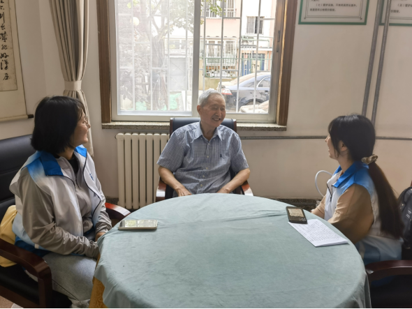 军队干休所是军队离休干部的管理服务机构,也是他们的晚年之家。走进干休所的办公楼,团队成员首先向三位老首长献上花束,表达崇高的敬意与尊重。随后,尤干事带着成员们参观了荣誉室,并对干休所的发展历史进行了简要介绍。在荣誉室中,团队成员们以观看纪录片的形式,重温革命前辈的英雄事迹,从英雄模范身上汲取精神力量。紧接着,团队分成三组,分别对老首长进行交谈与采访,挖掘红色故事,深刻感悟革命前辈的坚定信念与伟大建党精神。