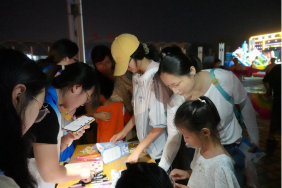 公益活动提升疾控知识宣传实效。7月15日,团队前往火车站广场,化身夜市摊位一份子,采取知识问答形式宣传传染病防治知识。团队准备手工DIY扇子、扭扭棒装饰、面条和牙膏等奖品分别吸引不同年龄段的参与者。成员分工明确,一队带着宣传手册进行流动宣讲并邀请大家到摊位进行有奖竞答;另一队则留守摊位负责知识普及、礼物分发,现场场面火爆,特别是DIY扇子活动,深受大家喜爱。本次活动年轻人参与较多,进一步扩大了团队宣讲的受众范围。