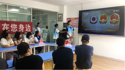 法律宣讲进社区。7月13日—7月19日实践团队先后前往韶山路社区、青云山路社区和华顶山路社区等社区进行国旗法、国歌法、国徽法以及《新时代的中国青年》白皮书宣讲普及活动。