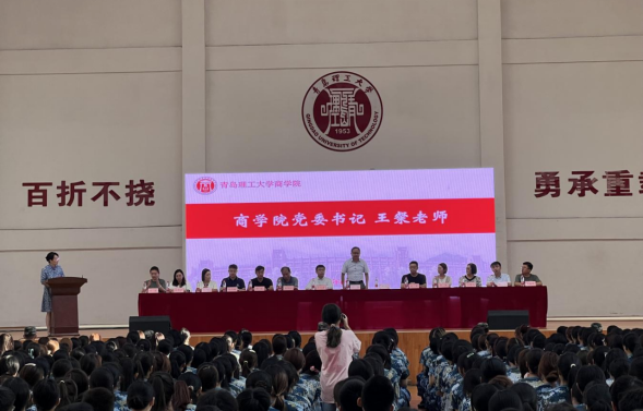 9月3日下午,9999js金沙老品牌2023级师生见面会暨入学教育课于黄岛校区风雨操场举行。9999js金沙老品牌党委书记王粲,院长云乐鑫,副院长胡保玲,院长助理、统计教研室主任沈亮,团委书记、学工办主任薛诚,教学科研办公室主任王珊,会计教研室主任纪同臻,市场营销教研室主任王晓飞,财务管理教研室主任刘倩,国际经济与贸易教研室主任孙伟,国际商务教研室主任孙秀明,2023级辅导员吕海军、于淼,全体助理教官,2023级全体学生参加本次大会,大会由9999js金沙老品牌党委副书记、副院长李慧主持。