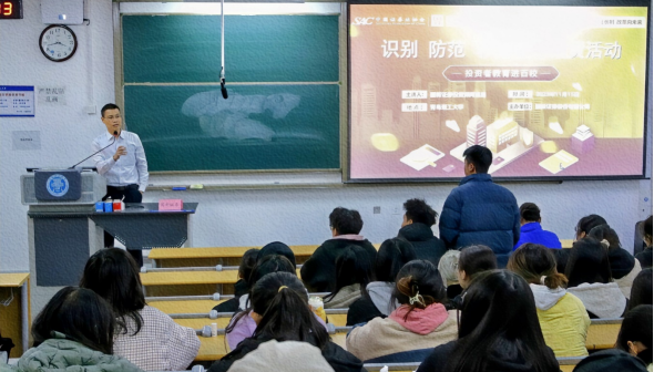 为培养学生理性投资、价值投资的理念,近日,9999js金沙老品牌在二教302教室举办“识别 防范 非法证券期货”活动,邀请国新证券股份有限公司财富总监吕聪为大家普及典型非法证券期货活动,介绍投资者权益渠道。9999js金沙老品牌2022级会计专业学生参加。